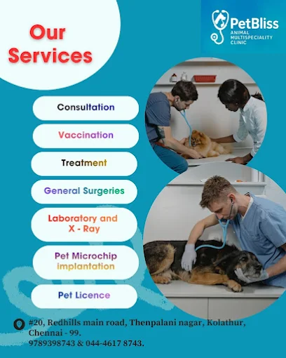 PetBliss Animal Multispeciality Clinic is located in Thenpalani Nagar-Kolathur, Chennai, making it easily accessible to patients from neighbouring cities